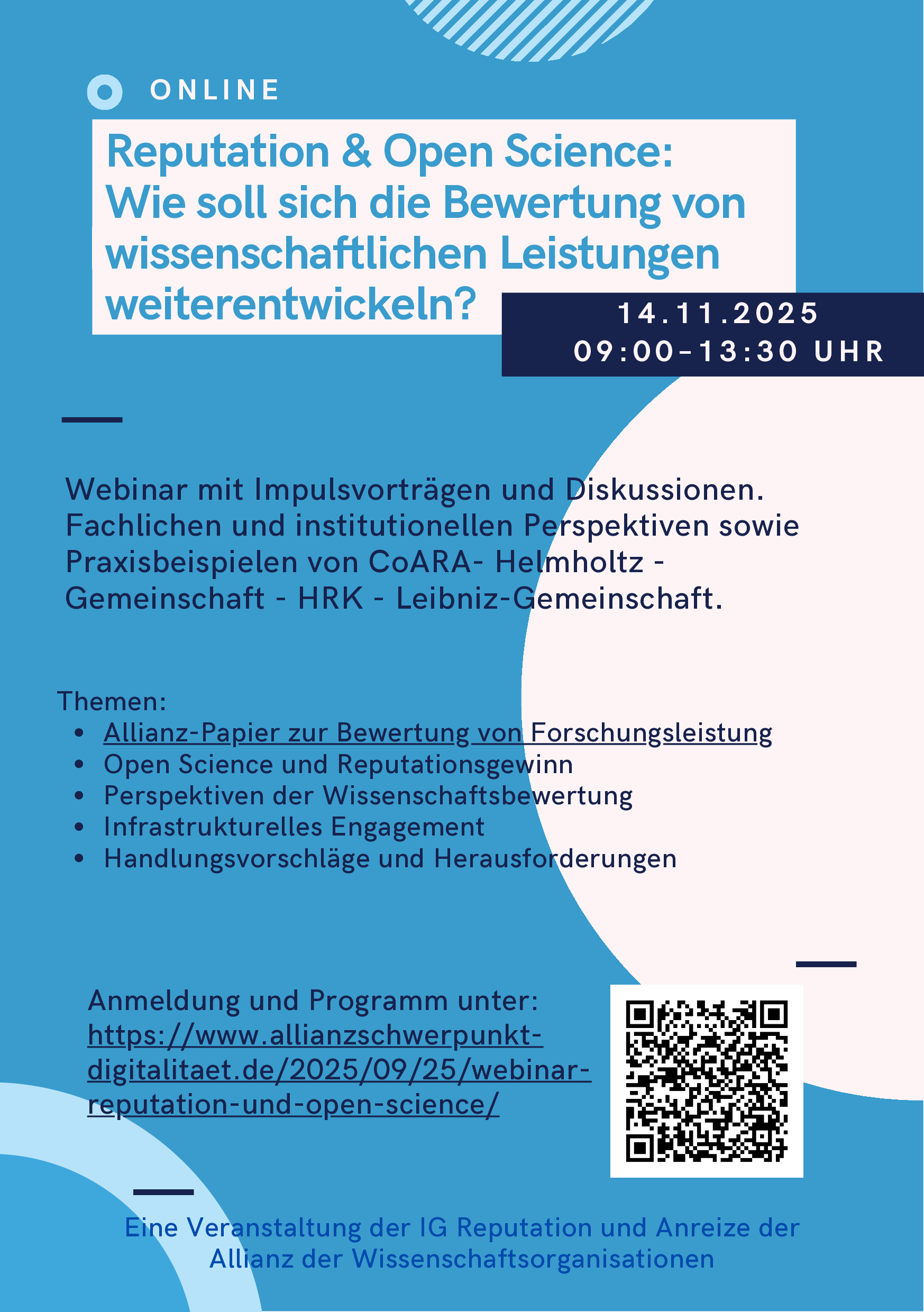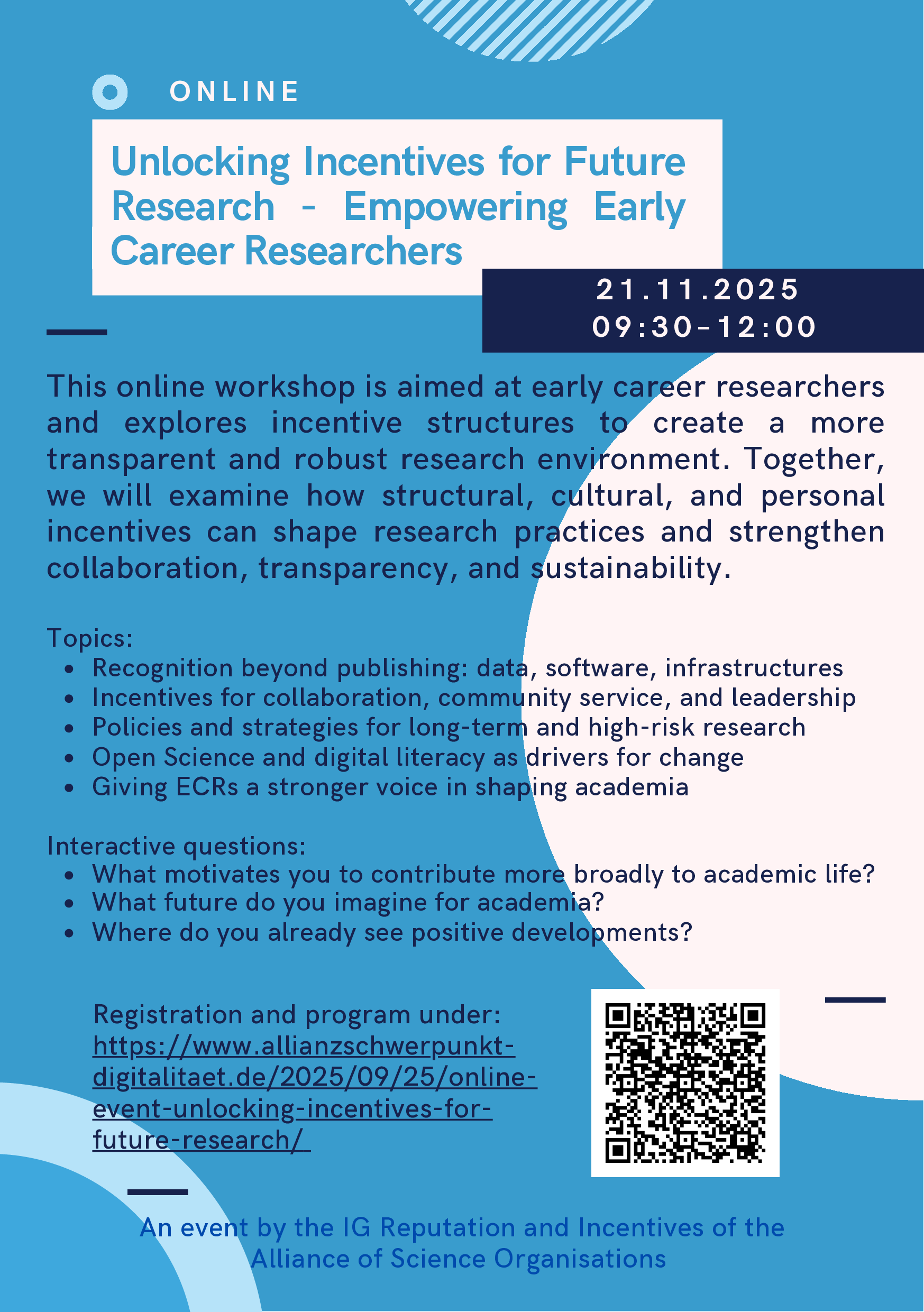 The online workshop is aimed at early career researchers (ECRs) and explores incentive structures to create a more transparent and robust research environment. The event is organized by IG5 of the Allianz focus on “Digitality in Science”.